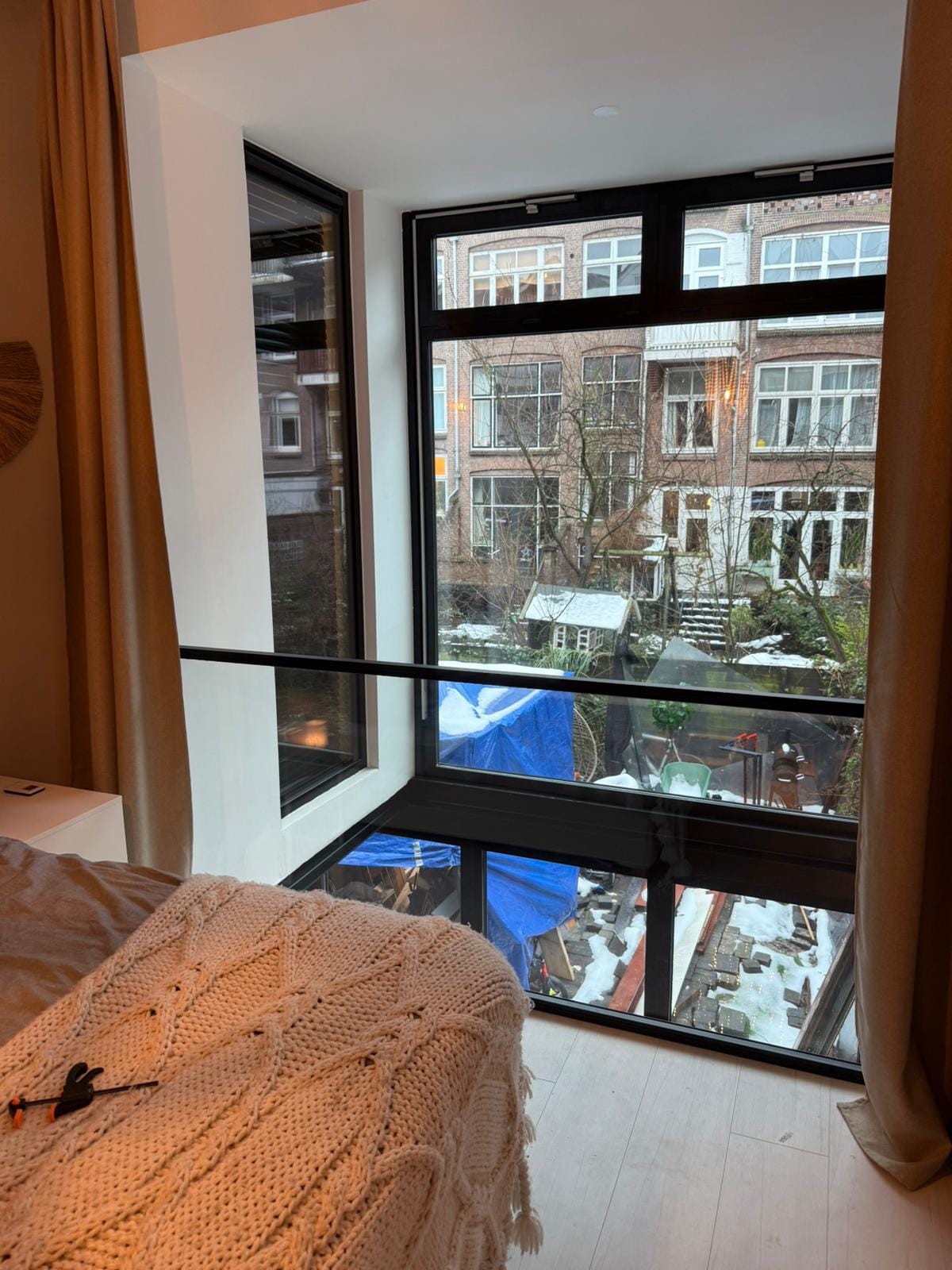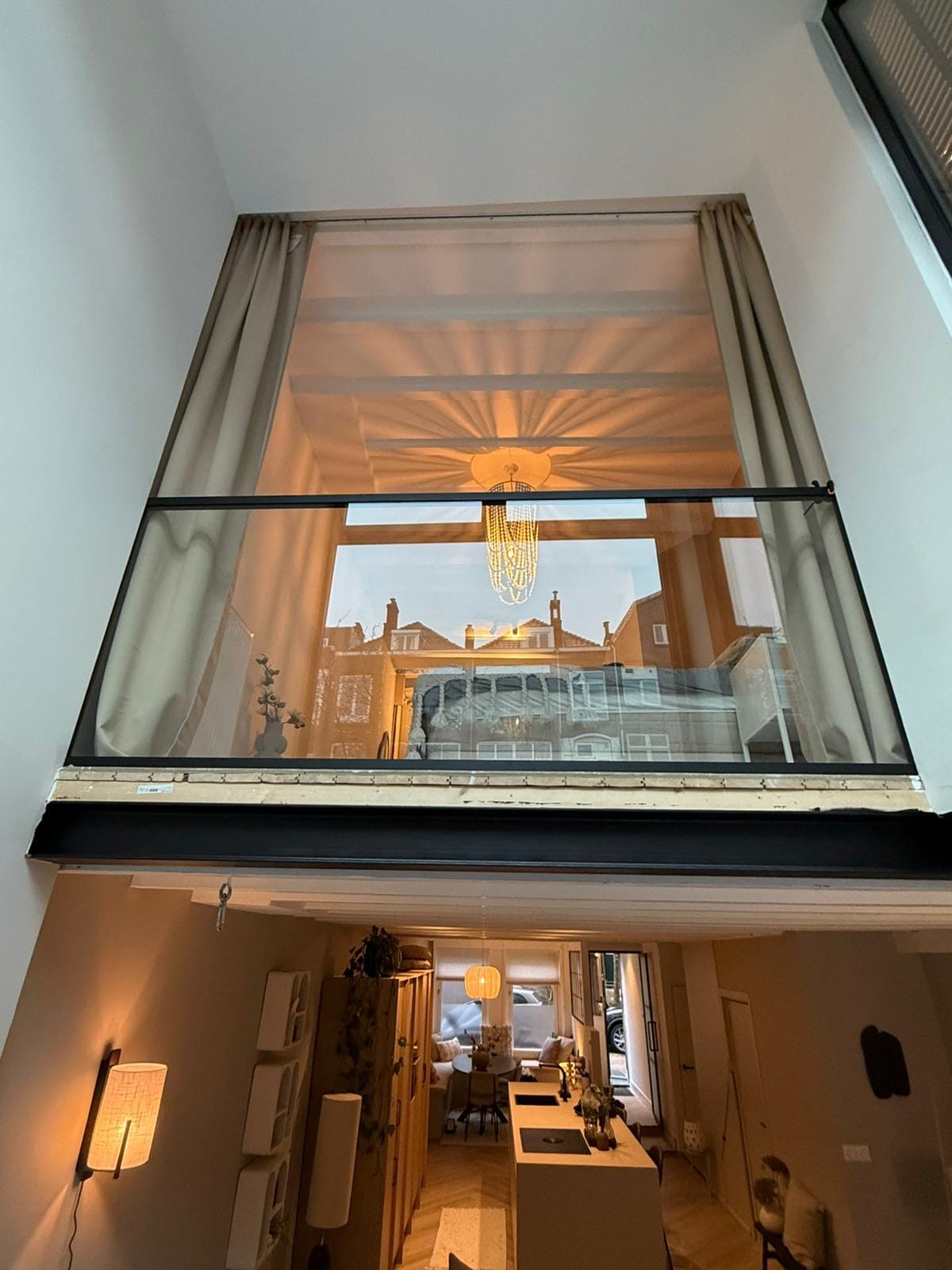 Glazen balustrade in slaapkamer